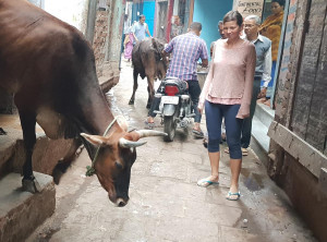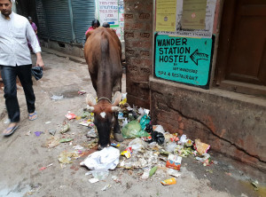 Noch zu erwähnen wäre an dieser Stelle die „heilige Kuh“ – diesen Ausspruch hat sicher jeder schon einmal gehört, aber um zu verstehen, was es bedeutet mussten wir nach Indien reisen. Erstmal angekommen ließen die Kühe auch nicht lange auf sich warten. Zunächst mal ist es ein ungewohnter Anblick für eine Ostfriesin – die Kühe führen ein Eigenleben mitten in den Städten. Sie stehen zum Beispiel mit samt Kälbchen auf Straßen oder Kreuzungen und werden von den vielen Fahrzeugen hupend umschifft. Viele Restaurants oder Privathaushalte werfen ihre Kartoffelschalen oder sonstige Essensabfälle auf die Straße, damit die Kühe diese fressen können, wenn sie vorbeikommen. Andere Kühe suchen im herumliegenden Müll nach Essensabfällen. Einige Hindus legen beim Passieren einer Kuh kurz die Hand auf.