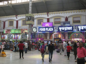 Kolkata hat einen Kopfbahnhof mit einer großen Vorhalle mit einigen Restaurants, es herrschte geschäftiges Treiben. Auf unserer Suche nach dem Busbahnhof wurden wir von einigen Bettlern belagert. Wir hatten uns schon im Vorfeld entschieden, direkt von Bahnhof einen Bus zum Flughafen zu nehmen und die Stadt nicht weiter zu besichtigen.