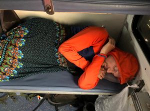 Für die Abreise aus Varanasi haben wir einen Nachtzug ausgesucht, der zunächst einmal nicht auftauchte. Nach etwas Warterei zwischen den mittlerweile üblichen Menschenmassen sind wir mit einer Stunde Verspätung in unseren Zug Richtung Kolkata gestiegen. Den richtigen Wagen und unsere Plätze haben wir sehr schnell gefunden, das System kannten wir ja schon. Wir bezogen unsere Liegen im Schlafwagen und richteten uns für die Nacht ein. Die nächsten 14 h sollten wir in diesem Zug verweilen, mittlerweile war es 23 Uhr und uns vielen ziemlich bald die Augen zu.