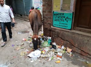 Noch zu erwähnen wäre an dieser Stelle die „heilige Kuh“ – diesen Ausspruch hat sicher jeder schon einmal gehört, aber um zu verstehen, was es bedeutet mussten wir nach Indien reisen. Erstmal angekommen ließen die Kühe auch nicht lange auf sich warten. Zunächst mal ist es ein ungewohnter Anblick für eine Ostfriesin – die Kühe führen ein Eigenleben mitten in den Städten. Sie stehen zum Beispiel mit samt Kälbchen auf Straßen oder Kreuzungen und werden von den vielen Fahrzeugen hupend umschifft. Viele Restaurants oder Privathaushalte werfen ihre Kartoffelschalen oder sonstige Essensabfälle auf die Straße, damit die Kühe diese fressen können, wenn sie vorbeikommen. Andere Kühe suchen im herumliegenden Müll nach Essensabfällen. Einige Hindus legen beim Passieren einer Kuh kurz die Hand auf.