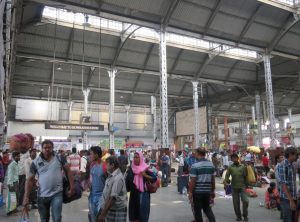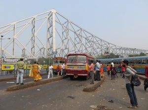 Kolkata hat einen Kopfbahnhof mit einer großen Vorhalle mit einigen Restaurants, es herrschte geschäftiges Treiben. Auf unserer Suche nach dem Busbahnhof wurden wir von einigen Bettlern belagert. Wir hatten uns schon im Vorfeld entschieden, direkt von Bahnhof einen Bus zum Flughafen zu nehmen und die Stadt nicht weiter zu besichtigen.