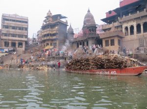 Entlang des Ufers des Ganges ziehen sich kilometerlange, stufenartige Befestigungen – die Ghats, an denen die Gläubigen im Wasser baden, das Bad im Ganges soll von Sünden reinigen. Ein paar Meter neben der traditionellen Waschung werden die Leichen der Verstorbenen auf Holzscheiten verbrannt, nachdem sie in das heilige Nass der „Mutter-Ganges“ getaucht wurden. Die Asche wird nach der Verbrennungszeremonie in den Fluss gestreut. In Varanasi zu sterben und verbrannt zu werden, ist der hinduistischen Mythologie zur Folge der Ausbruch aus dem ständigen Kreislauf der Wiedergeburt. Jeder gläubige Hindu versucht mindestens einmal im Leben nach an diesen besonderen Ort zu pilgern.