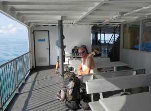 Wir setzten nach unserer Übernachtbusfahrt im Luxusbus aus Bangkok mit der Fähre von Don Sak nach Koh Samui über. Die Fahrt in den Morgenstunden dauerte etwa 1,5 h und verging wie im Flug. Blaues Wasser mit schön anzusehenden kleinen felsigen Inseln links und rechts. Wir genossen ein Thai Frühstück mit Reis & Ei und eins mit Reisnudeln & Gemüse und schon waren wir am Ziel für die nächsten 6 Tage.