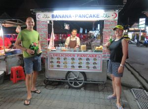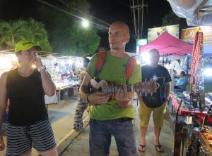 Die Insel Koh Samui ist für unseren Geschmack etwas zu touristisch und zum Teil sind die Preise ganz schön gepfeffert, wie bei uns :-). Es sind viele viele Deutsche unterwegs – es gibt zum Beispiel im Zentrum von Lamei eine „Lindenstrasse“ wo deutsche Spezialitäten angepriesen werden. Einen ruhigen Ort, so ganz ohne Touristen haben wir nicht gefunden – Ausnahme auf dem Weg zum Wasserfall als wir uns verlaufen haben und von tausenden Mücken auf einer kleinen Kautschukplantage überfallen wurden. Taxifahren ist Luxus (teurer als bei uns); 3 km kosten zum Beispiel abends 300 – 400 Bhat; ein Roller kostet am Tag 150 Bhat (100 Bhat sind etwa 3,70 €).