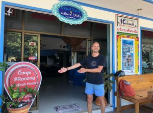 Wir kamen gegen 19 Uhr an und mussten uns zunächst eine Unterkunft für die Nacht suchen. Dieses hatten wir noch nicht gemacht, da wir morgens nicht ganz sicher sein konnten, so weit zu kommen. Glücklicherweise gab es auf diesem kleinen alten Busbahnhof in Ranong WLAN – das gab es selbst in Bangkok nicht. Wir suchten ein Hotel in der Nähe, schulterten unsere Rucksäcke und gingen zu Fuß zu unserer 1,6 km entfernten Unterkunft. Das Hotel und das Personal machten einen sehr guten Eindruck, wir wurden freundlich empfangen und ein freies Zimmer gab es auch noch.