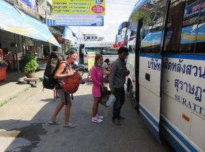 Auf unserem Weg von Kho Samui nach Kho Phayam übernachteten wir in Ranong, da der Weg nicht an einem Tag zu schaffen ist. Wir konnten schon auf Koh Samui ein Kombiticket für die Fähre und den Bus bis nach Surat Thani lösen. Wieder auf dem Festland in Don Sak angekommen, wartete dort schon der Bus und ca. 90 Minuten später waren wir in der Provinzhauptstadt Surat Thani. Wir ließen uns von einen Tuk Tuk den letzten Kilometer zum Busbahnhof bringen. Nach kurzem Durchfragen fanden wir den richtigen Schalter für den Ticketkauf und hatten noch Zeit, etwas zu essen und am Nachmittag ging es weiter nach Ranong.