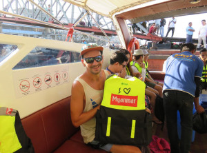 Mit an Bord waren einige Touristen aus Myanmar, Francis aus Hongkong und ein Pärchen aus Deutschland, welches schon seit 30 Jahren die Welt erkundet. Die zwei tranken bereits morgens um 8.00 Uhr ihr erstes Dosenbier. Warum auch nicht dachten wir, ist ja Urlaub – wir erhielten aber auch prompt die Erklärung, die wir zunächst für einen Scherz hielten. „Wir vertragen das Wasser aus Plastikflaschen nicht, zuhause kaufen wir nur Glasflaschen“. Da die Gesundheit ja immer vor geht, sei den beiden Weltenbummlern das Bier gegönnt.