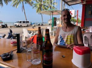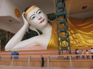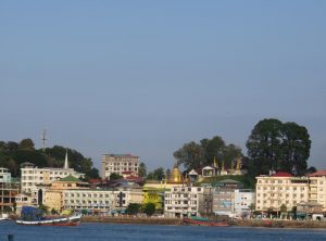 Am ersten Tag erkundeten wir etwas die Gegend und spazierten 3 km durch Wohnviertel der Stadt bis zum Busbahnhof, um dort die Optionen für die Weiterreise zu checken. Zurück ging es ebenfalls zu Fuß, vorbei an spielenden Kindern und geschäftigen Burmesen. Wir stiegen auf einen kleinen Hügel und bestaunten einen sehr großen Buddha. Nach dem Abstieg erholten wir uns schließlich bei einem Myanmar Bier an der Strandpromenade. Der gesamte Streifen am Wasser ist wenig touristisch und es tummeln sich Fischerboote am Ufer. Die Bierflaschen sind hier mit 640 ml recht groß, im Restaurant kostet eine 2000 Kyat (1,12 Euro), bei 34°C ist man da schnell beschwipst. Im Kronkorken von Markus Flasche versteckte sich zu unser Freude ein Gutschein für ein Freibier, welchen wir auch direkt einlösen mussten, am Nachmittag schliefen wir unseren Rausch aus. 🙂