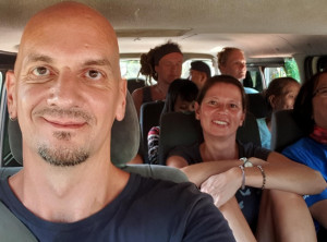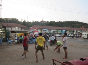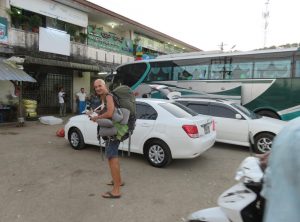 Die Straße gen Norden führte uns als nächstes nach Mawlamyaing – die Stadt mit M, deren Namen wir nicht aussprechen können. Wir stiegen zeitgleich mit der untergehenden Sonne am Busbahnhof aus unserem Minibus aus. Markus durfte während der Fahrt im Minibus vorne sitzen, trotzdem haben wir uns nach den vielen Stunden in dieser Konserve vorgenommen, keinen Minibus mehr zu nutzen.