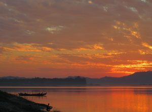 Am Vortag bei unserem Flug war es leicht bewölkt, an diesem Morgen war der Himmel klar und blau und die Sicht war unglaublich. Kurz nach 6 sahen wir weit entfernt über den Pagoden die ersten Ballons aufsteigen – an diesem Tag sind 19 Ballons abgehoben. Am Anfang waren sie am Horizont winzig klein, aber von Minute zu Minute kamen sie gemächlich näher, bis sie schließlich direkt über unserem Tempel vorbeiflogen und wir den Passagieren zuwinken konnten. All das wurde von der aufgehenden Sonne und einem phänomenalen Licht untermalt. Was für ein unbeschreiblicher Moment! Nachdem alle Ballons vorbeigezogen waren, fuhren wir zurück ins Hotel, frühstückten und dann ging es auf die Straße Richtung Monywa.