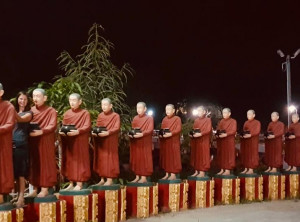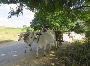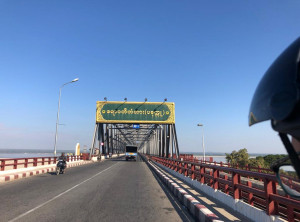 Bei unserem Start in Bagan säumten Tempel und Pagoden den Weg, später fuhren wir vorbei an Bananenplantagen und überquerten den Irrawaddy Fluss. In dieser Gegend werden Melonen angebaut, alle erdenklichen Melonenarten wurden am Straßenrand angeboten.