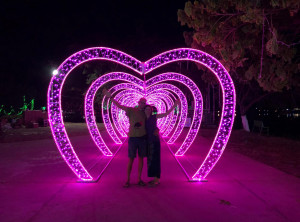 Am Abend machten wir einen Spaziergang um den See zu einer Pagode und stießen auf eine bunt beleuchtete Fußgängerbrücke – wir zahlten etwas Eintritt und bewunderten die bunt leuchtenden etwas kitschig Figuren, äähh sehr romantisch. Zur Beruhigung nach diesem Lichterflasch genehmigten wir uns ein hopfenhaltiges Getränk und gewannen noch ein zweites, das war dann wohl auch nötig.