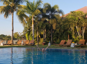 Das Zimmer lag am Rand des Geländes in einem Gebäude, in dem auch die Angestellten und die Wäscherei untergebracht sind. Egal – das Resort war toll, mit Pool, Fitnessstudio direkt an einem See gelegen. Wir brachten unseren Rucksack ins Zimmer und machten uns auf zum schönen Pool, um in den Sonnenuntergang zu schwimmen. Zurück im Zimmer stellen wir fest, dass alles voller Mäusekötel war, der Boden, die Kabelkanäle, die Fensterbank und sogar die Bettdecke – iii.