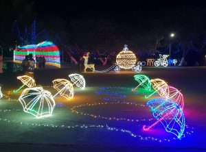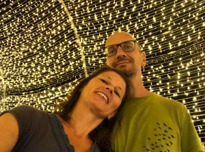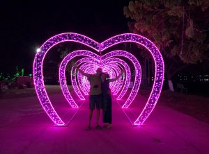 Am Abend machten wir einen Spaziergang um den See zu einer Pagode und stießen auf eine bunt beleuchtete Fußgängerbrücke – wir zahlten etwas Eintritt und bewunderten die bunt leuchtenden etwas kitschig Figuren, äähh sehr romantisch. Zur Beruhigung nach diesem Lichterflasch genehmigten wir uns ein hopfenhaltiges Getränk und gewannen noch ein zweites, das war dann wohl auch nötig.