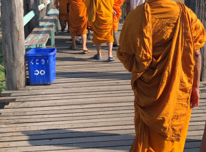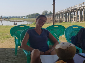 Die Brücke ist ein Fußgängerübergang, über den der Taungthaman See überquert werden kann. Sie ist 1,2 Kilometer lang, wurde um 1850 erbaut und gilt als älteste und längste Teakholz-Brücke der Welt. Die Brücke wurde nach dem Auftraggeber Herrn O Bein, X Bein – ach ne U Bein benannt. Sie ist besonders zum Sonnenuntergang ein beliebtes Ausflugsziel. Etwa In der Mitte der Brücke machten wir eine Rast. Es führt eine Treppe nach unten und am unteren Ufer gab es ein kleines Restaurant in einer Bambuskonstruktion. Wir beobachteten das Treiben auf dem See bei einer frischen Kokosnuss, anschließend machten wir uns weiter auf den Weg in das Stadtzentrum.
