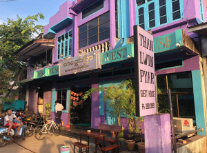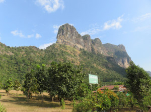 Die Busfahrt über Nacht vom Inle See nach Hpa-an dauerte 15 Stunden. Die ersten Kilometer dauerten ewig, da wir hier und da noch Personen und Güter eingesammelt haben und dann hielten wir noch für die obligatorische Pause zum Abendessen. Im Bus war es für mich zwar etwas eng, aber ansonsten waren die Sitze relativ bequem, so dass wir gut schlafen konnten. Auf den letzten Kilometern war es draußen schon wieder hell und wir haben die schöne Landschaft im Morgengrauen betrachtet. Die Region ist topfeben und daraus ragen an vielen Stellen sehr steile bewaldete Berge auf. Der Bus stoppte zum Glück nur ca. 500 Meter von unserem Hostel entfernt und wir konnten den Rest laufen. Obwohl es noch keine 8 Uhr war, konnten wir recht bald in unser Zimmer einchecken.
