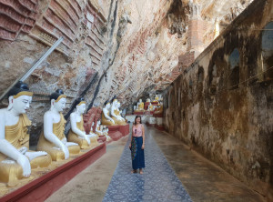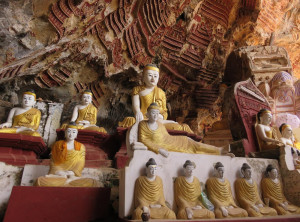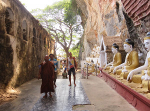 Wir mieteten uns wieder ein Moped, um die Umgebung zu erkunden. Für weniger als 5 Euro mieteten wir mit Abstand das beste Bike, das wir bis jetzt hatten. Von der Gangschaltung bis zur Tankanzeige funktionierte alles wunderbar. Den Vormittag nutzten wir zu einem Ausflug in eine Höhle. Die Kawgun Höhle zählt zu den schönsten Höhlen Myanmars, das Merkmal dieser Höhle sind die winzigen Buddhas, die zu zigtausenden in die Wand und die Decke gemeißelt sind.