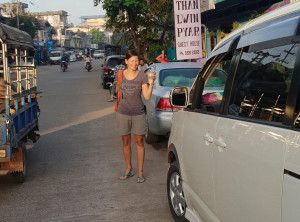 Wir wurden wie gebucht um 7 Uhr von einem Minivan im Hotel abgeholt, der uns nach Myawaddy an der thailändischen Grenze bringen sollte. Zunächst ging es noch tanken, bevor zwei weitere Mitfahrer abgeholt werden sollten. Wir warteten und warteten vor ihrem Hostel und es stellte sich heraus, dass diese den Transfer für 8 Uhr bestellt hatten und so standen wir eine Stunde auf dem Fleck, was nicht förderlich für unsere Laune war. Wir sind extra früh aufgestanden und haben das Frühstück sausen lassen, damit wir es an diesem Tag bis Chiang Mai schaffen.