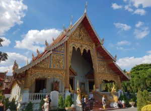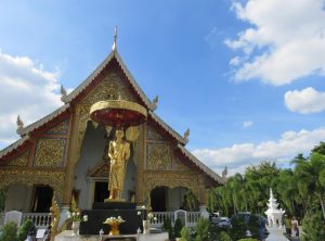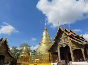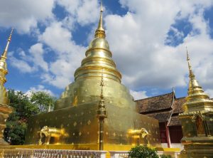 Wir blieben zwei Nächte, so hatten wie am nächsten Morgen Zeit, unsere weitere Reise zu planen und eine wenig Chiang Mai zu erkunden. Vormittags schauten wir uns etwas in der Altstadt um, beim Frühstück stöberten wir in den deutschen Reiseführern aus dem Hotel, um uns ein paar Tips für die Umgebung und für die nächsten Tage in Laos zu holen. Wir besuchten noch den sehr gepflegten Wat Phra SinghTempel mit einer großen goldenen Stupa.
