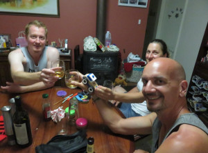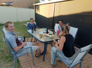 An einem Abend waren wir beim Nachbarn Bruce eingeladen, wir kannten Bruce schon von unserem letzten Besuch und freuten uns auf ihn und das indische Abendessen. So viel und so gut wie bei Bruce haben wir seit Wochen nicht gegessen. Eigentlich waren wir schon nach der Vorspeise satt, aber wir hielten tapfer bis zum Minzeisdessert durch. Es gab Fischcurry, Curry mit Shrimps und Chickencurry, Reis, Salat und dazu noch sehr sehr leckeren Wein und Whisky – so einen Nachbarn muss man einfach lieb haben. On Top durften wir noch die Reste für den nächsten Tag mitnehmen – toll.