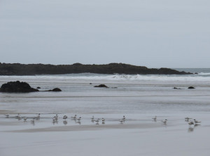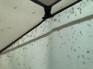 In den zwei folgenden Tagen waren die Etappen kürzer und wir konnten wieder auf einem kleinen kostenlosen und wunderschönen Campingplatz am Meer übernachten, den wir uns mit 2 Rumänen teilten. Dort griffen uns auf dem Weg zum Strand jedes Mal 2 Vögel an – Austernfischer. Die sind wirklich aggressiv und fliegen mit ihren langen roten Schnäbeln direkt auf dich zu und drehen erst im letzten Moment ab. Wir verbrachten den Nachmittag wieder am traumhaften Strand und legten uns abends erschöpft ins Zelt. Als wir morgens wach wurden sahen wir, dass die Außenhaut unseres Zelts von tausenden von Mücken belagert wurde (siehe Foto), die auf uns warteten. Ich ging so schnell es ging aus dem Zelt, löste schnell die äußere Hülle vom Zelt, schüttelte sie aus und lief erstmal weg.