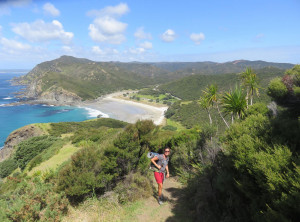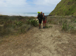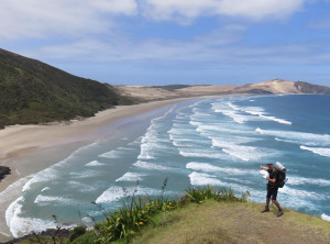 Am nächsten Morgen erlebten wir dann eine böse Überraschung. Irgendein Tier, vermutlich ein Opossum, hat einen unserer Rucksäcke geöffnet und sich über unseren Vorrat hergemacht. Zum Glück hatten wir aber viel zu viel Essen mitgeschleppt und wir rechneten aus, dass die vom Opossum verschmähten Reste gerade für uns ausreichten, wenn wir entsprechend haushielten. Also mussten wir nicht abbrechen und starteten zur zweiten Etappe entlang traumhafter Buchten und Stränden Richtung Cape Reinga. Dort angekommen war es mit der Zweisamkeit vorbei, denn bis hier führt eine asphaltierte Straße und der Leuchtturm auf der Klippe ist ein beliebtes Ausflugsziel. Wir machten ein paar Fotos, gingen rasch weiter und kurze Zeit später hatten wir die Tagesausflügler wieder hinter uns gelassen. Am Nachmittag kamen wir nach 19 anstrengenden Kilometern ziemlich erschöpft auf dem Campingplatz Tapotupotu Bay an.