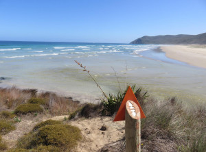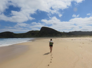 Ganz zum Schluss unserer Tour ging es noch mehrere Kilometer an einem wundervollen Strand durch knöcheltiefen Sand (sehr anstrengend). Wir erreichten unser Auto am Mittag des vierten Tages – geschafft und wir sind nicht verhungert! Wir machten uns hungrig über die im Auto gelagerten Vorräte her und brachen auf zur Bay of Islands.