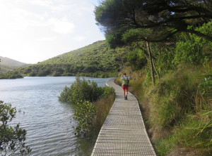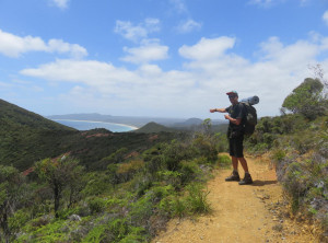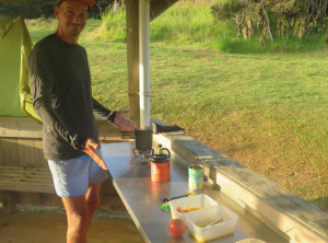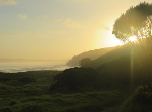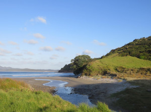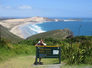 Nach mehr als sieben Stunden Autofahrt über teilweise sehr kurvige Straßen, sind wir abends um halb 8 an der Spirit’s Bay am Pazifischen Ozean ganz im Norden Neuseelands angekommen. Pünktlich zum Sonnenuntergang saßen wir mit einer Flasche Rotwein am traumhaften Strand und genossen die Ruhe. Wir waren beide etwas aufgeregt. Morgen sollte unsere 3-4 tägige Wanderung beginnen, auf der es unterwegs außer Wasser, das abgekocht werden muß, keine Möglichkeit zur Versorgung gab. Wir mussten alles mitschleppen, was wir benötigten – vom Zelt bis zum Essen. Außerdem wußten wir noch nicht, wie wir zum ca. 20 Kilometer entfernten Startpunkt der Tour kommen sollten.