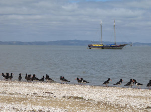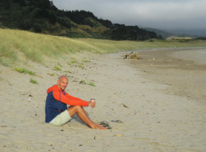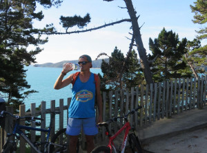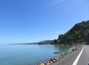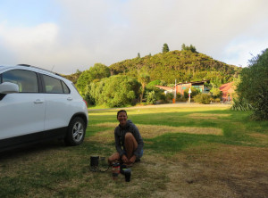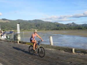 Nach dem „Wildcamping“ mit den Maori-Familien und einer Frühstückspause an der Küste im Ort Thames, fuhren wir auf einer wahnsinnig schönen Küstenstraße Richtung Coromandel. Diesmal waren wir früh dran, wir checkten schon vormittags auf einem Campingplatz mit großzügig ausgestatteten Küche ein und bereiteten ein paar Mahlzeiten für die geplante 2-Tages-Wanderung vor. Nachmittags schnappten wir uns die für uns als Campinggäste kostenlosen Mountainbikes und fuhren vorbei an Austernfarmen etwas die Küste entlang.