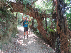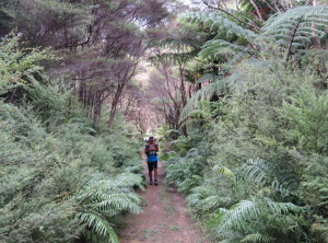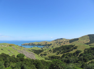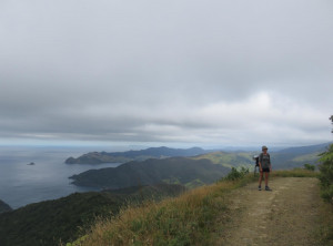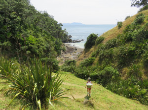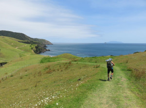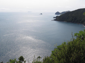 Wir packten unsere Rucksäcke und bei wunderschönem Wetter ging es los. Der Weg führte durch einen Wald an der felsigen Küste entlang und weit unten schimmerte der tiefblaue Ozean. Für neuseeländische Verhältnisse herrschte auf dem Track reges Treiben. Außer uns waren auch einige andere Grüppchen unterwegs.