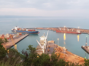 Am nächsten Morgen frühstückten wir in der Sonne auf dem Balkon mit Blick auf das Meer. Den restlichen Vormittag musste ich leider arbeiten. Niko schaute sich etwas in der Stadt um und ging schwimmen. Nachmittags machten wir eine kleine Tour mit unserem Auto und hielten zunächst an einer Winzerei mit Restaurant. Wir machten ein paar Fotos und fuhren weiter. Niko ließ es sich nicht nehmen, auf dem Rückweg noch eine Tüte voll mit Äpfeln auf einer Plantage zu stibitzen, bevor wir zum Sonnenuntergang zu einem Aussichtspunkt oberhalb der Stadt fuhren. Im Abendlicht beobachteten wir von dort das Anlegemanöver eines großen Schiffes im tief unter uns liegenden Hafen. Das war eine echte Millimeterarbeit der Lotsenboote, die den riesigen Kahn in die richtige Position schoben.