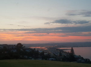 In der Nacht ist es abgekühlt, nach der langen Hitzeperiode mit Temperaturen um die 30 °C war es mit nunmehr 18 °C deutlich kühler, ganz angenehm. An diesem zweiten Morgen drehten wir noch eine Joggingrunde am Meer, bevor wir uns auf den Weg nach Taupo machten.