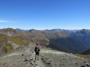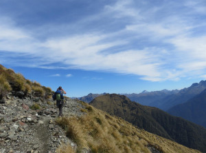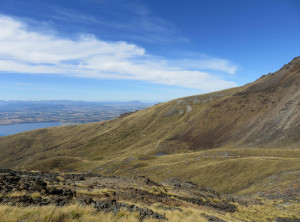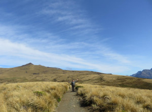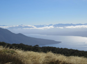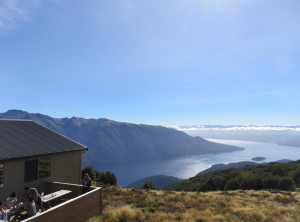 Kurz danach erreichten wir die Waldgrenze und die Aussicht wurde atemberaubend. Die Luft war klar und tief unter uns lag Te Anau an dem großen See. Es ging über den gut ausgebauten Weg zunächst zur Luxmore Hütte und danach weiter zum Ziel – den Gipfel des Mt Luxmore.