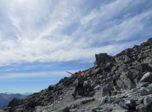 Wir machten eine kleine Pause und das obligatorische Gipfelfoto, bevor wir uns wieder an den Abstieg machten. Schließlich mussten wir die 17 Kilometer wieder zurück gehen. Nach 10 Stunden kamen wir etwas erschöpft aber glücklich an unseren Camper an und fuhren zurück zum Campingplatz.