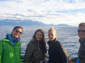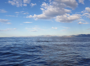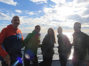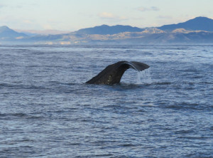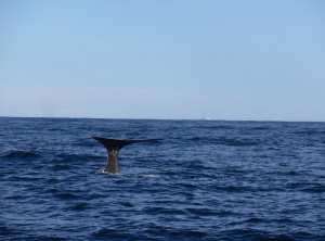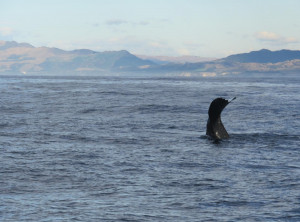 Am nächsten Morgen trafen wir uns dann alle wieder, Diana, Marcello und Janine – ein perfekter Tag mit Sonnenaufgang über dem Meer, Janines Geburtstag und dem Whalewatching, bei dem wir zwei etwa 18 Meter lange Wale beim Abtauchen zuschauen dürften. Begleitet wurde das Spektakel noch von springenden Delphinen – der Hammer!