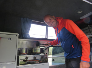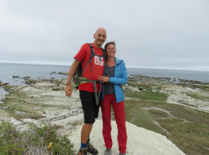 Wir spazierten insgesamt 14 km an der Küste entlang und wollten durch den Ort zurück zum Campingplatz gelangen. Zurück am der Straße verlief der Wanderweg parallel zur Fahrbahn. In einem der Camper, die uns entgegen kamen, saßen Janine und Marcello. Mit den beiden hatten wir uns am nächsten Tag verabredet – um so besser! So konnten wir bei einem spontanen Kaffee schon mal ne Runde quatschen. Die zwei waren schon zum dritten Mal in Neuseeland im Urlaub und sind richtige fitte Wanderprofis – macht Spaß sich auszutauschen!