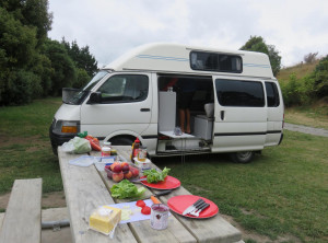 Wir sind jedoch kurz vor Christchurch abgebogen Richtung Mount Hutt – hier liegt das populärste Skigebiet der Südinsel. Die Nacht verbrachten wir auf einem Campingplatz an einem Flüsschen am Fuße der Bergkette. Nach der letzten eher kurzen Nacht und von der Fahrerei waren wir müde und fielen schnell in einen tiefen Schlaf.