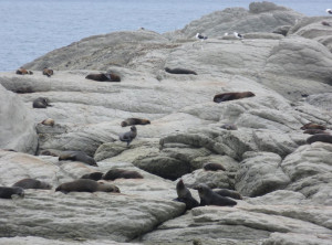Am nächsten Tag hatten wir noch etwas mehr als 200 km bis zum Ziel Kaikoura vor uns, wir frühstückten an einem schönen Plätzchen auf dem Weg und düsten weiter Richtung Norden. Die letzten Kilometer ging es an einer Küstenstraße auf und ab, links die Berge, rechts das Meer. Hier leben sie also die Robben, Wale und Delphine.