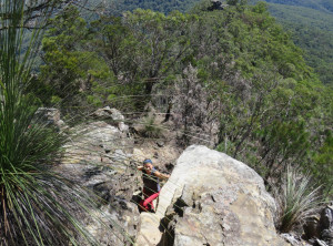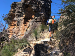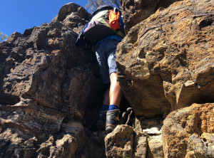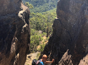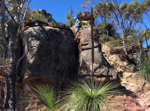 Von hier ging es noch weiter und weiter nach oben. Wir waren nun schon 5 h unterwegs und hatten noch nicht die Hälfte der geplanten Route geschafft. Die Strecke hatten wir uns selber zusammen gestellt und nicht damit gerechnet, dass wie so viel klettern müssen. Das Klettern hat Spaß gemacht, aber auch Zeit gekostet. Also entschieden wir schweren Herzens lieber die 12 km wieder zurück zu gehen, als die geplanten weiteren 20 km zurückzulegen. Wir wollten nicht bei Dunkelheit im australischen Busch verloren gehen. Also hieß es Absteigen, zurück ging es dann deutlich schneller und um 17:30 waren wir zurück am Auto – Umkehren war definitiv die richtige Entscheidung.