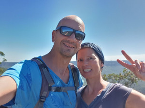 Am nächsten Morgen standen wir früh auf und verließen beim Sonnenaufgang den Zeltplatz. Das Zelt ließen wir stehen, da wir auch die nächste Nacht hier übernachteten. Am Startpunkt der Wanderung machten wir uns einen Kaffee. Es war frisch an diesem Morgen und los ging es. Wir hatten uns 30 Kilometer und einige Höhenmeter für diesen Tag vorgenommen. Die Strecke verlief zunächst durch einen schönen Wald, es ging immer wieder auf und ab. Irgendwann mussten wir klettern, es ging mit allen Vieren immer höher und höher. Von einem flachen Felsen hatten wir einen rundum Blick auf den Nationalpark, schön!