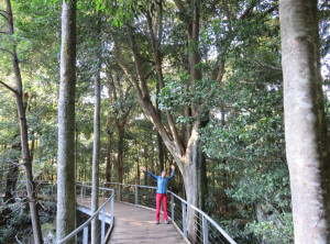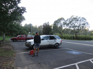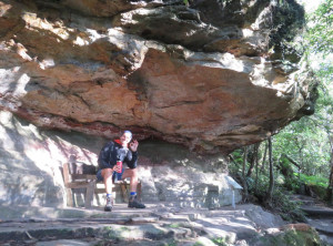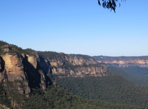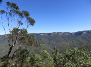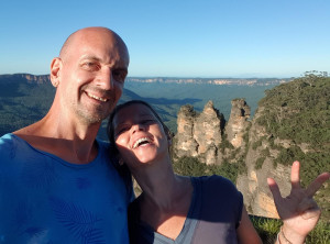 Am späten Nachmittag sind wir in der kleinen Stadt Katoomba und damit im Nationalpark Blue Mountains angekommen. Zunächst mal füllten wir unsere Lebensmittelvorräte auf. Gegen 17 Uhr standen wir dann auf der Aussichtsplattform vor der Touristeninfo und genossen die schöne Aussicht auf die Three Sisters, drei nebeneinander stehenden Felsen. Unser Plan ging auf, das Wetter für den nächsten Tag war klar und sonnig angesagt. Wir tranken noch einen Cappuccino und führen dann 20 km zu einem kostenlosen Campingplatz im Wald, der mit Picknicktische nund Toiletten ausgestattet ist, jedoch ohne Wasser. Wir stellten unser kleines Zelt auf und bereiteten unser Abendessen zu. Es gab Wraps mit Avocado und Humus, lecker. Mit am Tisch saßen zwei Abiturientinnen aus Berlin. Die Mädels hatten sich auch ein Auto gekauft und reisen für ein paar Wochen durch Australien. Sie erzählten uns, das 50 % ihrer Mitschüler nach dem Abistress erstmal eine Auszeit im Ausland machen, warum auch nicht. Die zwei waren unglaublich jung und ganz schön mutig.