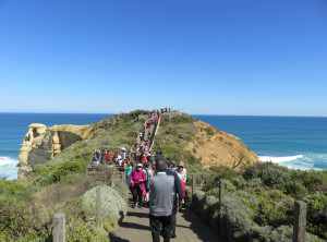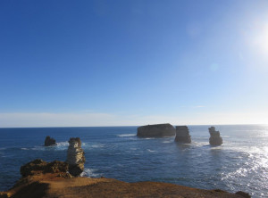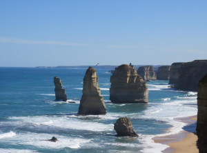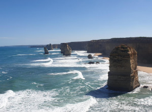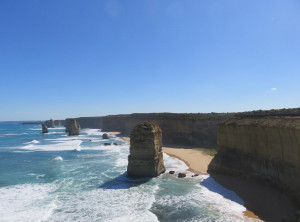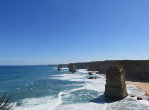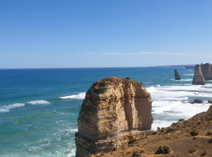 Unser Weg führte uns weiter durch den Otway Nationalpark zum Port Campbell Nationalpark, immer an der Küste entlang und in Richtung der 12 Apostel. Das sind bis zu 60 Meter hohe 12, beziehungsweise nur noch 8 Kalksäulen im Südpolarmeer. Die 12 Apostel sind direkt nach dem Ayers Rock die am zweithäufigsten fotografierte Touristenattraktion in Australien.