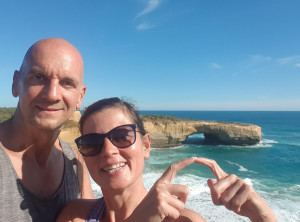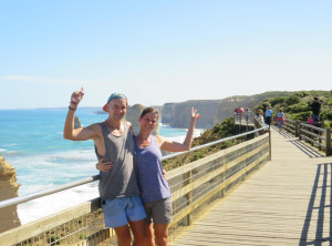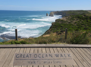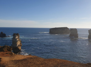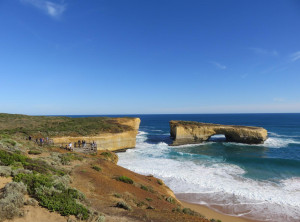 Da wir also mit vielen Menschen direkt an der Aussichtsplattform rechneten, entschieden wir uns, schon 6 km vorher zu parken und über den Great Ocean Walk zu joggen. Diese Idee hatte sonst keiner, wir blieben auf dem Weg für uns. Es ging an der Küste auf und ab und immer wieder sahen wir die näher kommenden Gesteinsformationen in der Brandung. Wir gönnten uns den ein oder anderen Fotostop vor dem Ziel, dort war es dann tatsächlich voll! Am Parkplatz standen einige Autos in der Warteschlange und einige 100 Touristen tummelten sich auf dem weitläufigen Gelände. Zum Glück gibt es mehrere balkonähnliche Plattformen, von denen man einen tollen Blick aus verschiedensten Winkeln hat. So kann jeder sein persönliches Erinnerungsbild schießen.