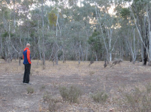 Am frühen Nachmittag kamen wir im Örtchen Nuriootpa an, wir schlugen unser Zelt auf und richteten uns ein. Danach spazierten wir im Nachbarort Tanunda umher. Im ganzen Tal ist an diesem Wochenende ein Vintage Festival und überall waren Veranstaltungen geplant. In Tanunda war ein süßer Markt, auf dem bei Gitarrenmusik selbstgemachte Handwerksstücke angeboten wurden. Vor dem Sonnenuntergang fuhren wir zu einem Aussichtspunkt mit Blick über die Weinberge, ein Stück weiter am Kaiserstuhl wanderten wir eine kleine Runde. Die Sonne stand schon sehr tief uns es wurde kühl, nachts sollte es auf 6 Grad runter gehen. Wir sahen bei der Wanderung eine Gruppe Kängurus. Nun machten wir uns auf den Weg zurück zum Campingplatz. Nur ein paar hundert Meter von unserem Zelt entfernt fand an diesem Abend ein “German Straßenfest” statt. Das Barossa Valley ist von vielen deutschen Auswanderern besiedelt und somit gibt es den ein oder anderen deutschen Einschlag. Die Festwiese war mit Wimpeln in schwarz rot Gold geschmückt, es gab Bier aus großen Krügen und live Musik, na typisch deutsch eben.