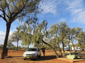 Zurück auf dem Stuart Highway sah ich eine Aborigines-Familie mit einem Auto am Straßenrand stehen und um Hilfe winken. Uns wurde gesagt, man soll bloß nicht anhalten, denn dann sei man sein Geld los, da es eine Masche von Kriminellen ist. Also fuhren wir mit schlechtem Gewissen weiter zum nächsten Roadhouse, an dem es eine kostenlose Campingmöglichkeit gab. Wir berichteten von der Aborigines Familie und ob man ihnen Hilfe schicken soll, aber uns wurde uns bestätigt, das wir alles richtig gemacht haben. Traurig aber war, mit diesem Trick werden regelmäßig Touristen ausgenommen. Don´t Stop!!!