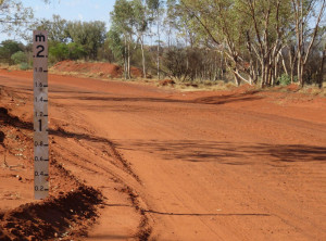 Auch die leichte Schotterpiste war in einem weit schlechteren Zustand als der von uns wenige Tage vorher befahrene Oodnadatta Track. Es gab mächtige Bodenwellen und sehr sandige (roter Sand) Passagen, aber am Ende überstanden wir auch diesen Ritt zum Glück ohne Probleme.