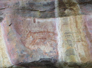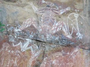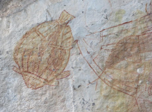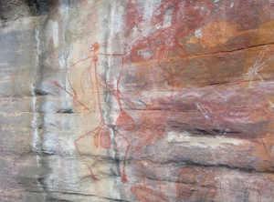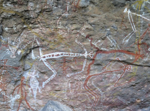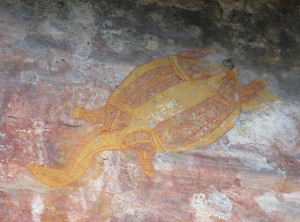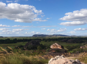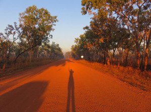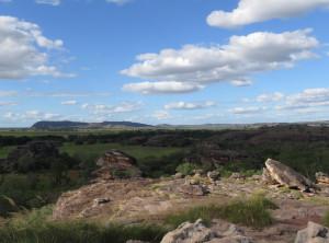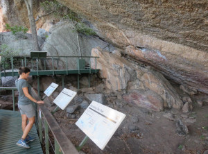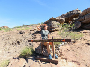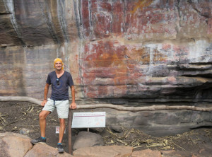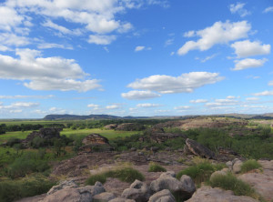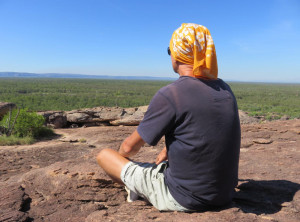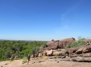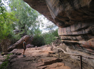 Unweit des Flusses liegt Ubirr, das ist ein großer Felsen, an dessen Rand die Aborigines noch vor weniger als 200 Jahren gelebt haben. Einige Wandmalereien an den Felsen erzählen Geschichten ihres Alltags. Von einer Aussichtsebene auf einem Felsen kann die Umgebung und die unendliche Weite von Australians größtem Nationalpark bestaunt werden. Dieser Spot ist sehr beliebt zum Sonnenuntergang, wir genossen ganz alleine die Weite und verweilten etwas. Auf dem Rückweg begegneten wir anderen Besuchern, die ihre Kameraausrüstung mit sich trugen. Zurück am Parkplatz war es mittlerweile richtig voll, Touristengruppen wurden mit dem Bus vorgefahren und auch zurück auf der Straße sind uns weiter Busse entgegen gekommen.