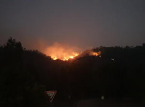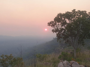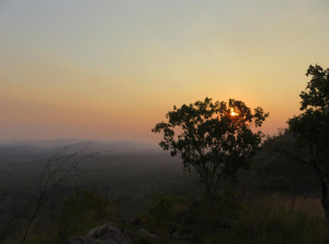 Zum Sonnenuntergang setzten wir uns auf die Felsen und aßen unser Abendessen. Hier gesellten sich vier Männer in Arbeitskluft zu uns, pausierten kurz und gingen weiter. Als wir aufbrachen, sahen wir, dass die vier ein Feuer gezündet hatten, erst klein und ganz bald recht groß. Wir kletterten den Berg runter und von unten sahen wir in der Dunkelheit quasi den Berg brennen. Auch in diesem Fall handelte es sich um ein kontrolliertes Feuer und für alle Camper ein großes Schauspiel. Wir gingen bald ins Zelt, schon am nächsten Morgen führte uns unsere Route raus aus dem Natonalpark in südliche Richtung und damit zurück ins Qutback.