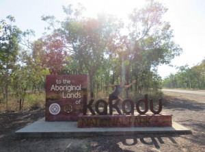 Nach unserer Nacht im Mary River Nationalpark durchfuhren wir am Morgen weiter die Wetlands und damit auch die Region zum Kakadu Nationalpark. Auf dem Weg brannte links und rechts die Böschung, wir durchfuhren dicke Rauchschwaden. Komisches Gefühl, wenn der Rauch ins Auto zieht, aber es handelte sich um kontrollierte Brände und ich versuchte, meine Gedanken zu beruhigen. Durch das Feuer wurden viele Tiere aufgeschreckt, wir sahen einige Greifvögel unruhig ihre Kreise ziehen. Wir erreichten nach etwa 100 Kilometern die Grenze des Kakadu Nationalparks und sahen hier bald ein paar weiße Kakadus am Straßenrand – so gehört sich das wohl 🙂