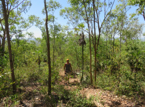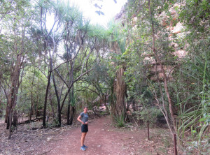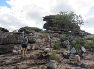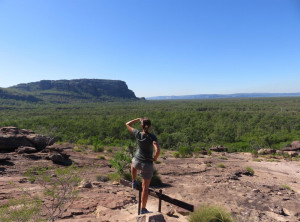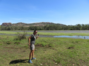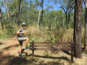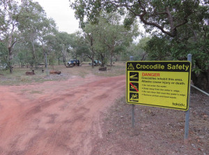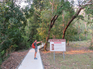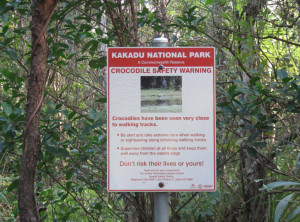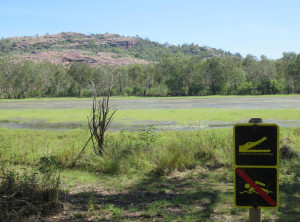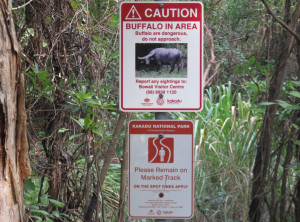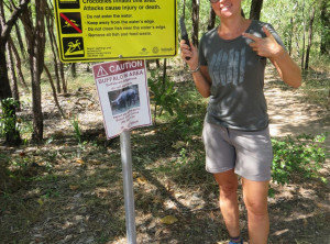 Am nächsten Morgen lauerten immer noch viele Moskitos außen am Zelt. Wir bauten ab und machten uns aus dem Staub. Am Vormittag machten wir drei kleine Wanderungen und bestaunten immer wieder die Lebensräume der Aborigines. An einem Wanderweg wurde wieder vor Krokodilen direkt am Weg gewarnt, wir entschieden uns diesen Weg nicht zu gehen. Seit wir uns in diesem Nationalpark aufhielten, bin ich zur Belustigung von Markus nur noch mit meinem Buschmesser aus dem Auto gestiegen. Neben den Krokodilen war auch noch ein wütender Wasserbüffel unterwegs, Natur pur! Wir waren auf jeden Fall mit dem nötigen Respekt und permanent erhöhter Aufmerksamkeit unterwegs.